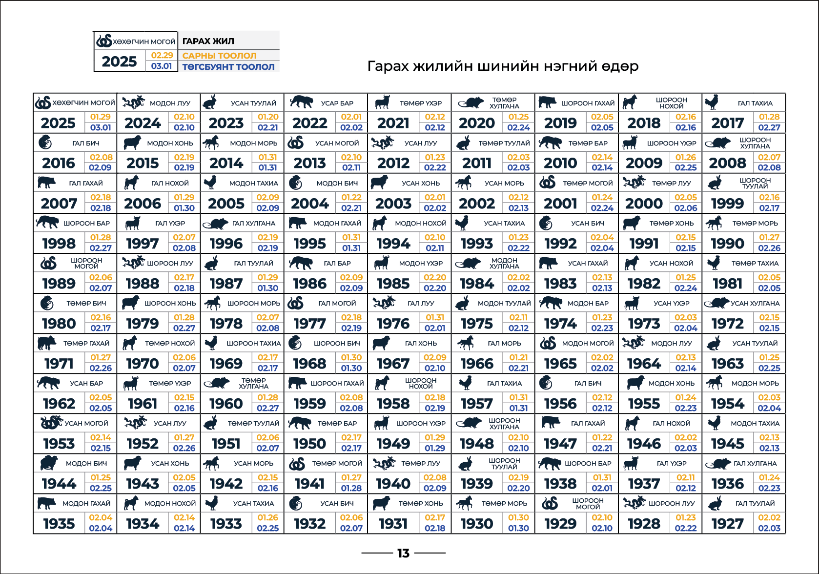 Өмнөх жилүүдийн хуанли